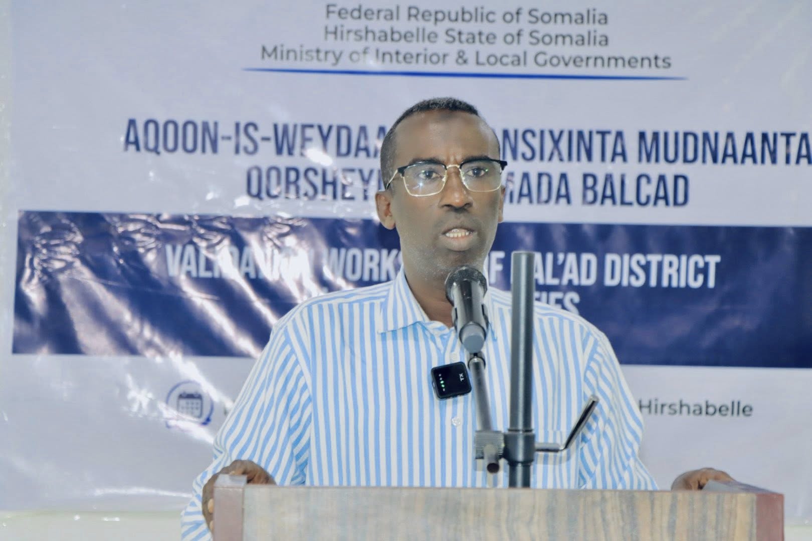 Wasiirka Arrimaha Gudaha iyo Dowladaha Hoose ee Hirshabelle mudane Abdirahman Dahir Guure (Karoore) oo ay weliyaan Agaasimaha Guud