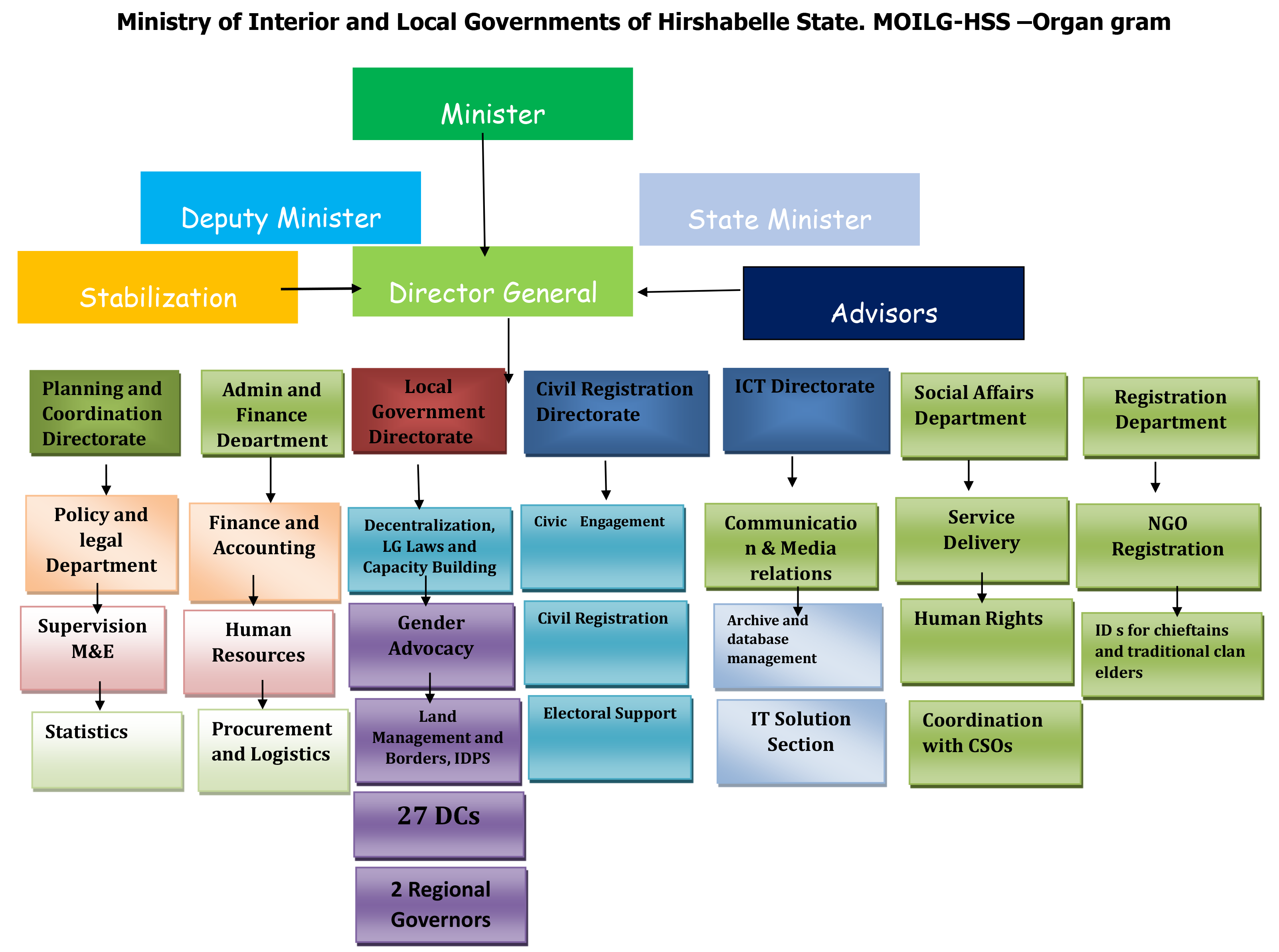 Ministry of Interior and Local Governments of Hirshabelle State. MOILG-HSS –Organ gram